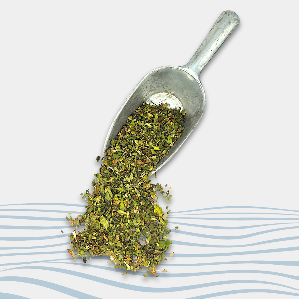 purer Pfefferminztee, der durch seinen leichten Mentholgeschmack sowohl erfrischend als auch gesundheitsfördernd wirkt