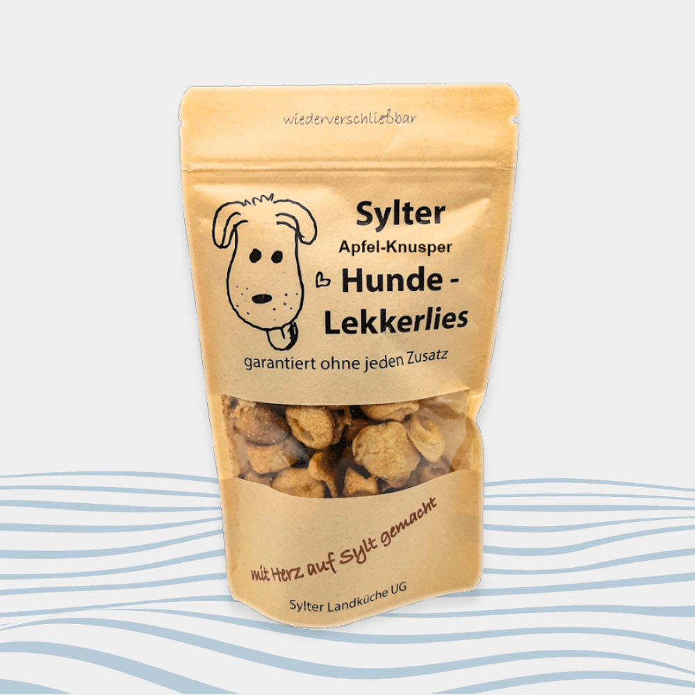 Unsere Hundeleckerlis der Sylter Landküche sind die perfekte Belohnung für Ihren Liebling! Liebevoll handgemacht, mit hochwertigen Zutaten und ganz ohne Weizenmehl – für eine natürliche und gesunde Ernährung.